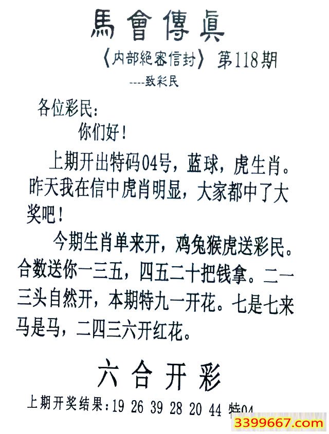 118期:首发推荐:≮馬會傳眞≯→(香港正版)
