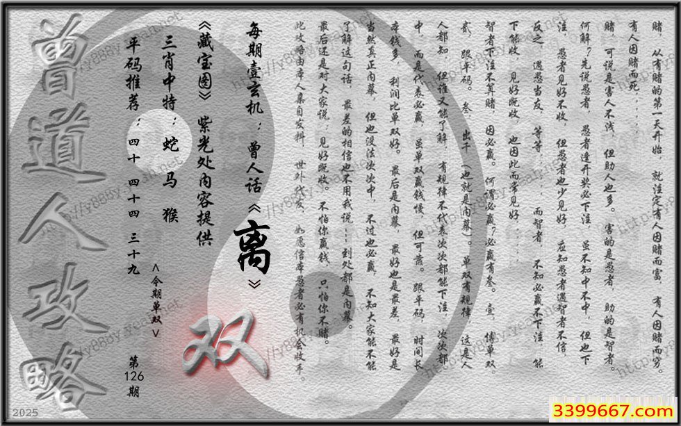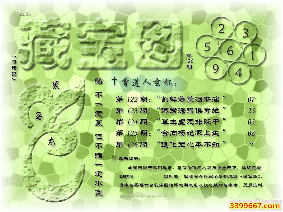 126期藏寶圖 新:造化无心本不知 老:流到前溪无半语 禁:兔 禁:8尾