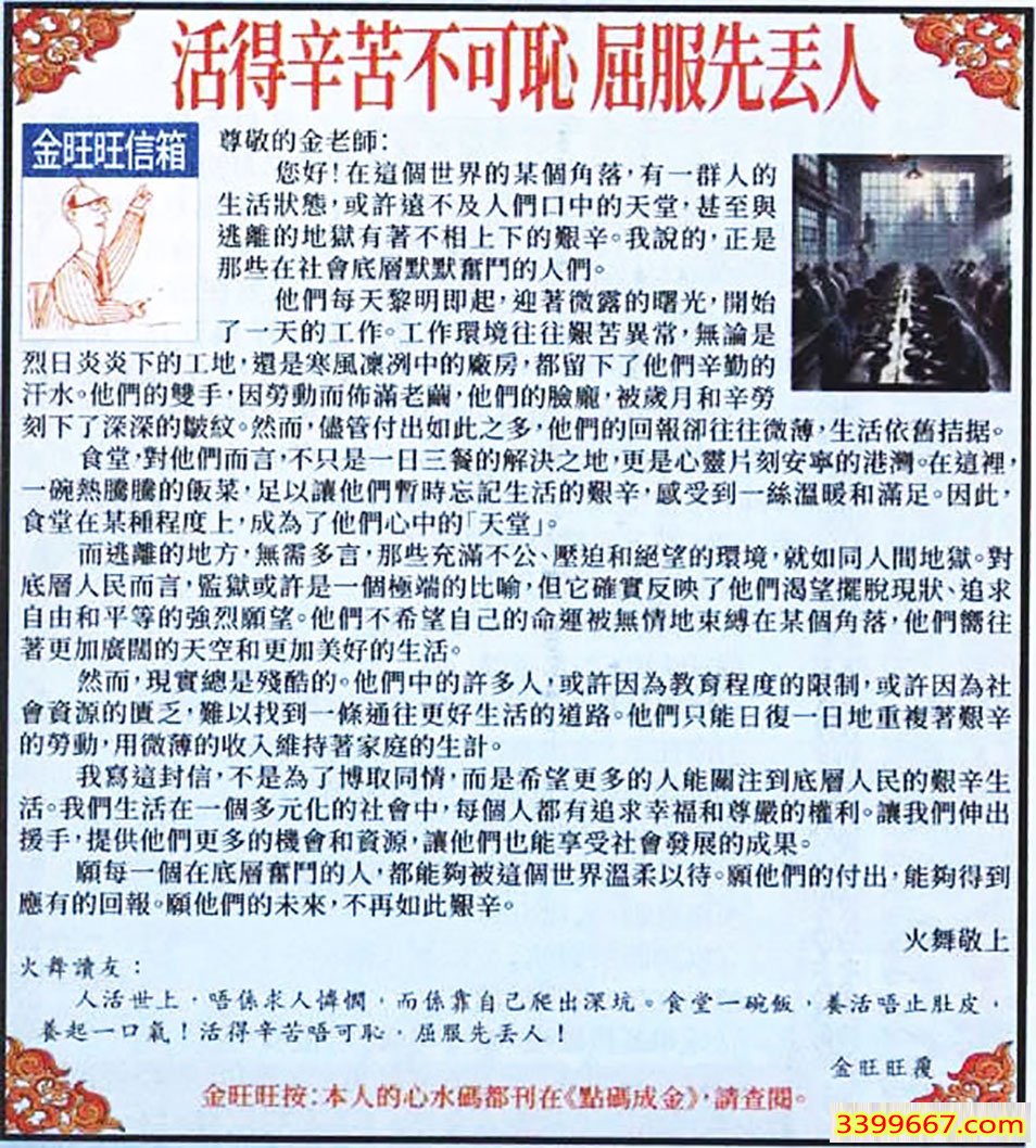 | 主题 :010期:金旺旺信箱彩民推荐→→《活得辛苦不可恥 屈服先丟人》 |