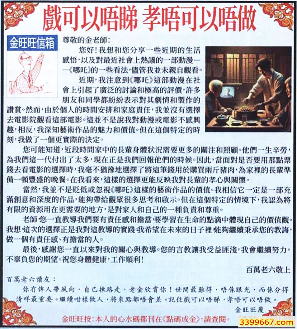 主题 :011期:金旺旺信箱彩民推荐→→《戲可以唔睇 孝唔可以唔做》