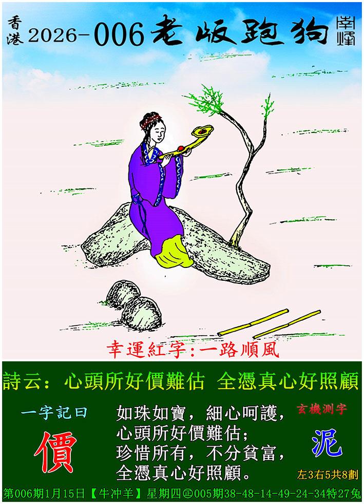 | 主题 :006期老版跑狗一字記之曰:【價】 詩雲:心頭所好價難估,全憑真 |
