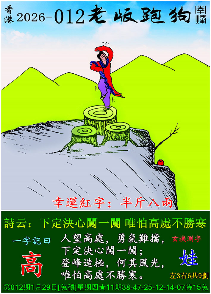主题 :012期老版跑狗一字記之曰:【高】 玄機測字:《娃》